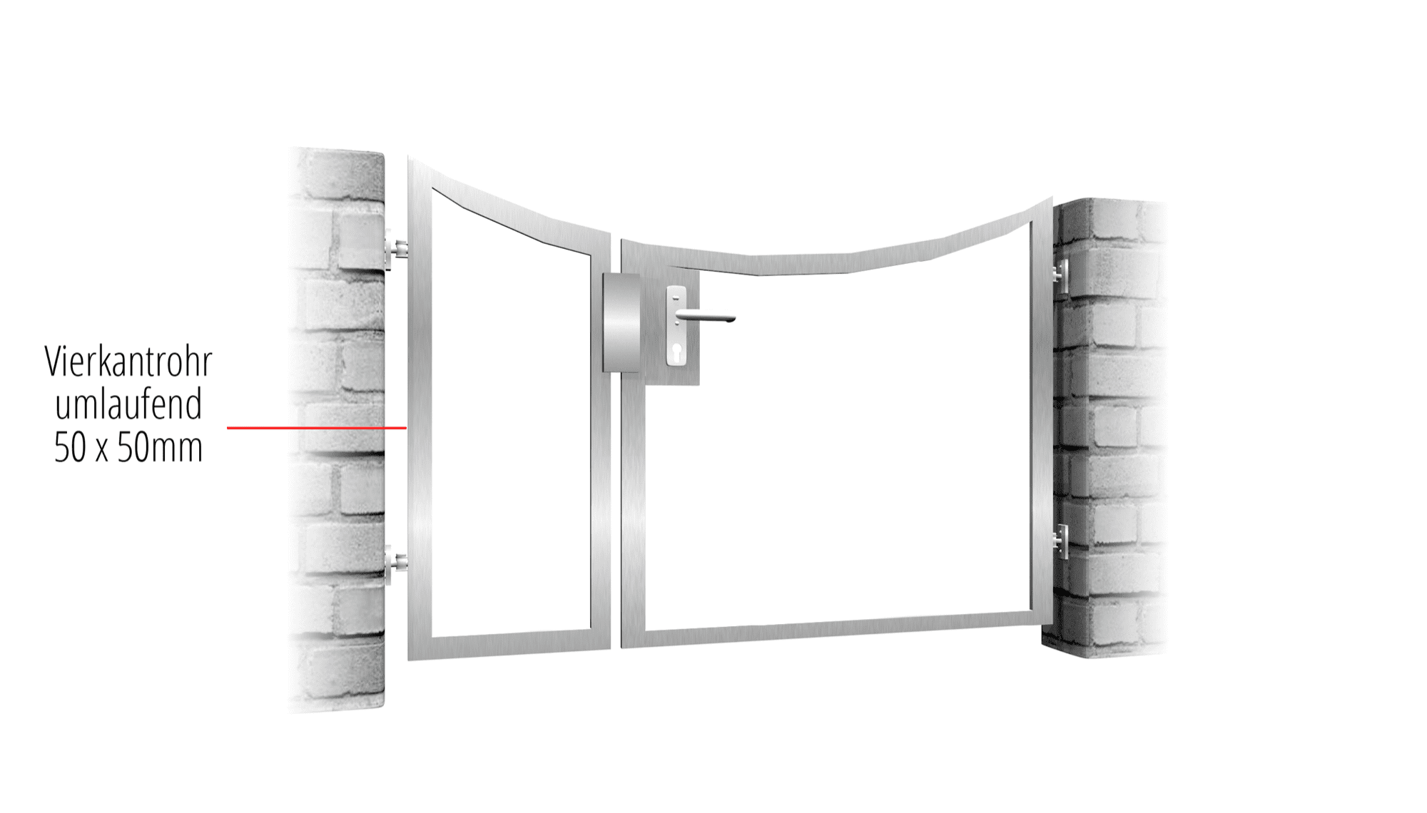 De dubbele roestvrijstalen tuindeur is gemaakt van een V2A-kozijn, als voorbereiding op een eigen invulling met bovenboog. Dit geeft u de mogelijkheid om zelf een persoonlijke invulling samen te stellen uit plaatstaal, houten of aluminium latten. Verdere productdetails vindt u in de onderstaande beschrijving.