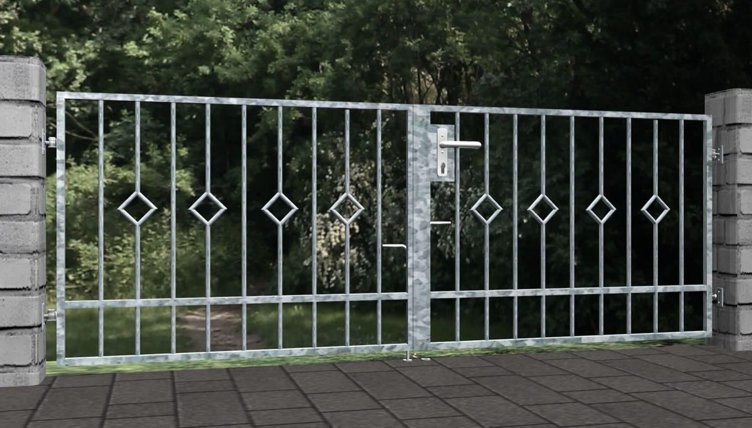 Productdetails Tuinpoort Verzinkte 2-vleugelige geblokte spijl, GE